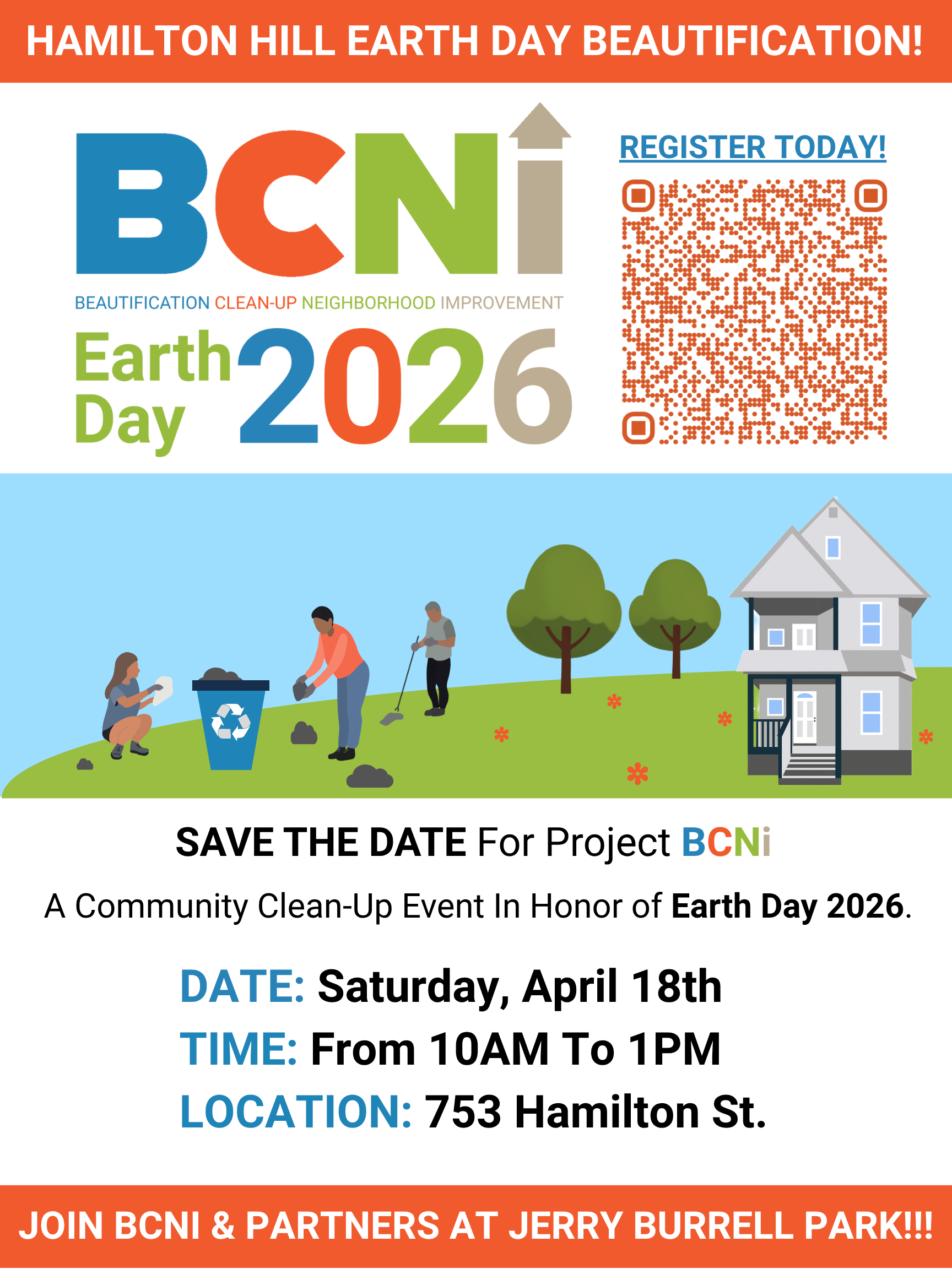 Join BCNI as we mark Earth Day 2026 with Spring Beautification, Clean-Up & Neighborhood Improvement in the Hamilton Hill Neighborhood of Schenectady.